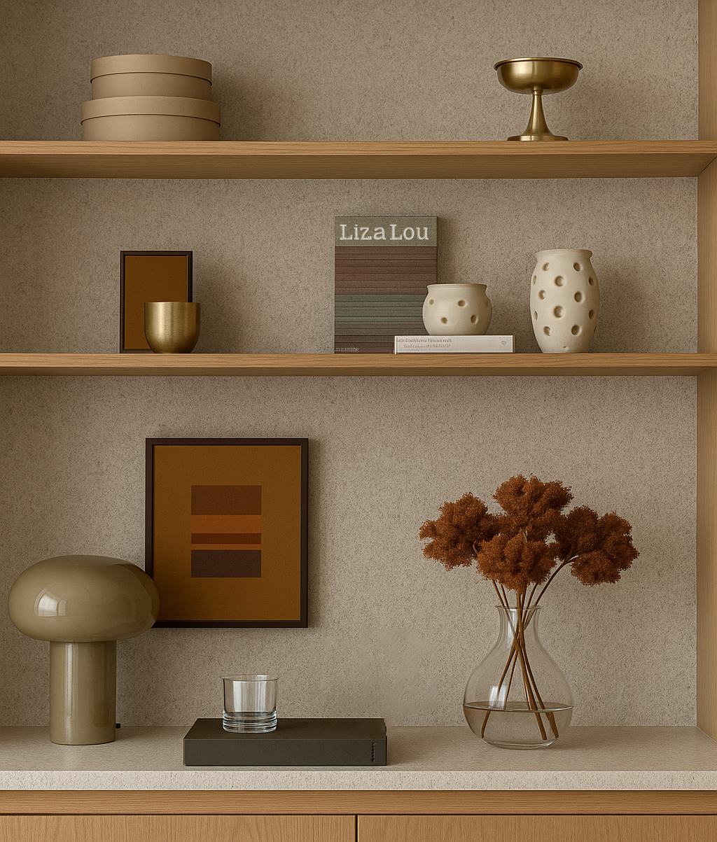 Trabalhamos a seleção de móveis, objetos, tecidos, quadros, luminárias, acessórios e revestimentos decorativos, sempre com foco em criar ambientes aconchegantes, funcionais e esteticamente coerentes com o estilo do cliente.